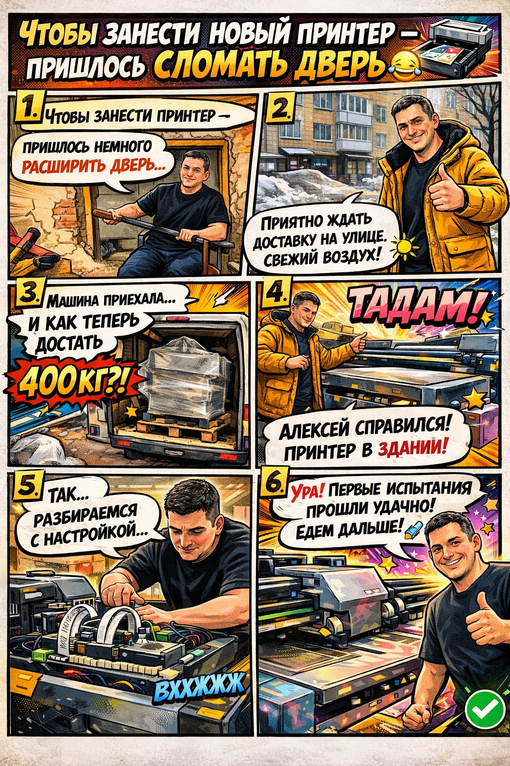 Чтобы занести новый принтер — пришлось сломать дверь ![]()